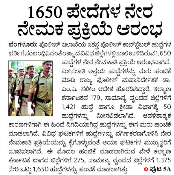 Posts: Police Constable, Sub-Inspector Posts Karnataka Post